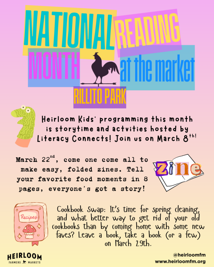 March is National Reading Month, and what better place to celebrate literacy than at the farmers market? At Heirloom Farmers Markets, we believe fresh food and fresh ideas go hand in hand.