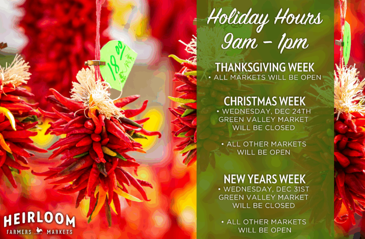 Wishing you a world of happiness this holiday season and throughout the coming year. Thank you for shopping local this season and supporting over 250 family-owned businesses at Heirloom Farmers Markets!
